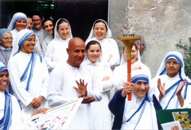 At this meeting, Mother Teresa also enthusiastically held the Peace Torch from the international Sri Chinmoy Oneness-Home Peace Run. She gave a most beautiful talk on serving God in the poor and offered her favourite prayer to Sri Chinmoy and each of the singers from the Sri Chinmoy Centres. During this meeting, Mother Teresa said to Sri Chinmoy:
