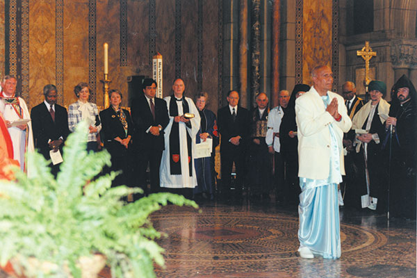 In July 1975, Sri Chinmoy offered the opening meditation at the National Day of Prayer ceremony at the UN, and at a similar ceremony in April 1976. Sri Chinmoy participated in many interfaith initiatives during his time in the West. His philosophy is to see the underlying oneness of different religions.